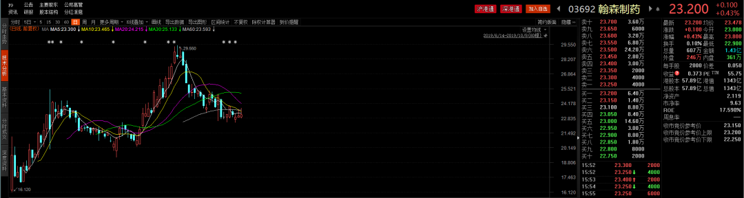 中国医药上市公司中市值第三大的翰森制药(HK:03692),就是个鲜活例子。 (注:以人民币计,截至2019年10月9日,恒瑞医药市值3480亿元,药明康德市值1366亿元,翰森制药1209亿元)。翰森制药2019年6月14日上市,却准备2019年-2020年给老股东派息57亿元:据招股书显示,其中先于2018年7月宣布向现有股东派息40亿元,预计在未来2-3年内付清;后又于今年9月底发布特别股息公告,再向老股东派息17亿。