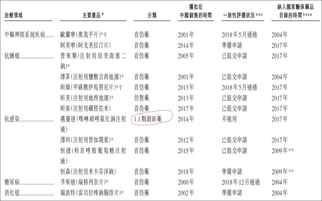 翰森制药产品线;来源:招股书