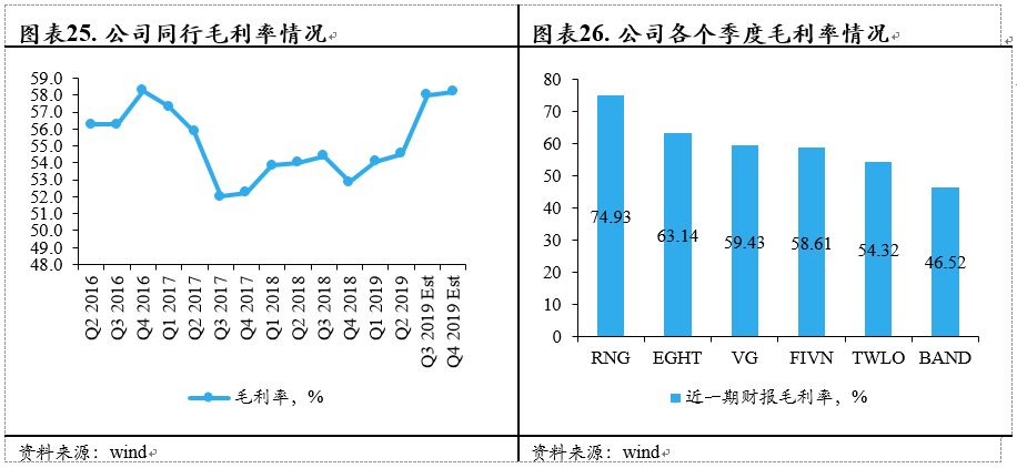 市场预计公司毛利率随着SendGrid的并表将提升至60%左右,但是依旧在同行中处于中等水平。而公司长期的目标在于60%-65%的毛利率,该目标的实现将依赖于公司新业务(如Flex)的开展情况。因此公司毛利率情况并不具备吸引力。