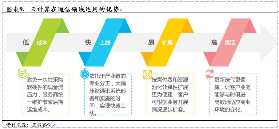 云通信行业的核心优势在于发挥资源优化配置优势,助力企业客户降本增效。云服务资源共享、弹性扩展等特点充分发挥了资源优化配置的效益,通信云服务作为其细分领域同样在降本增效方面极具价值。相比传统以硬件为核心的企业级通信服务,云服务无论从短期现金流压力或长期整体投入来看都大幅降低了客户的使用门槛,并且让原本需要数月才能搭建完成的通信系统可以快速上线。云服务的模式允许企业按需付费,在业务量突然扩张时也能够迅速扩容。与此同时,通信云服务的更新迭代快速且便捷,更加符合企业灵活发展的需要,通过及时应用最新的技术,让企业客户可以保持自身竞争力,紧跟市场变化趋势。总而言之,云计算提供了低门槛的服务以及随时可以调整的算力资源,不仅能够渗透到企业端的长尾市场,还能助力企业客户实现降本增效。