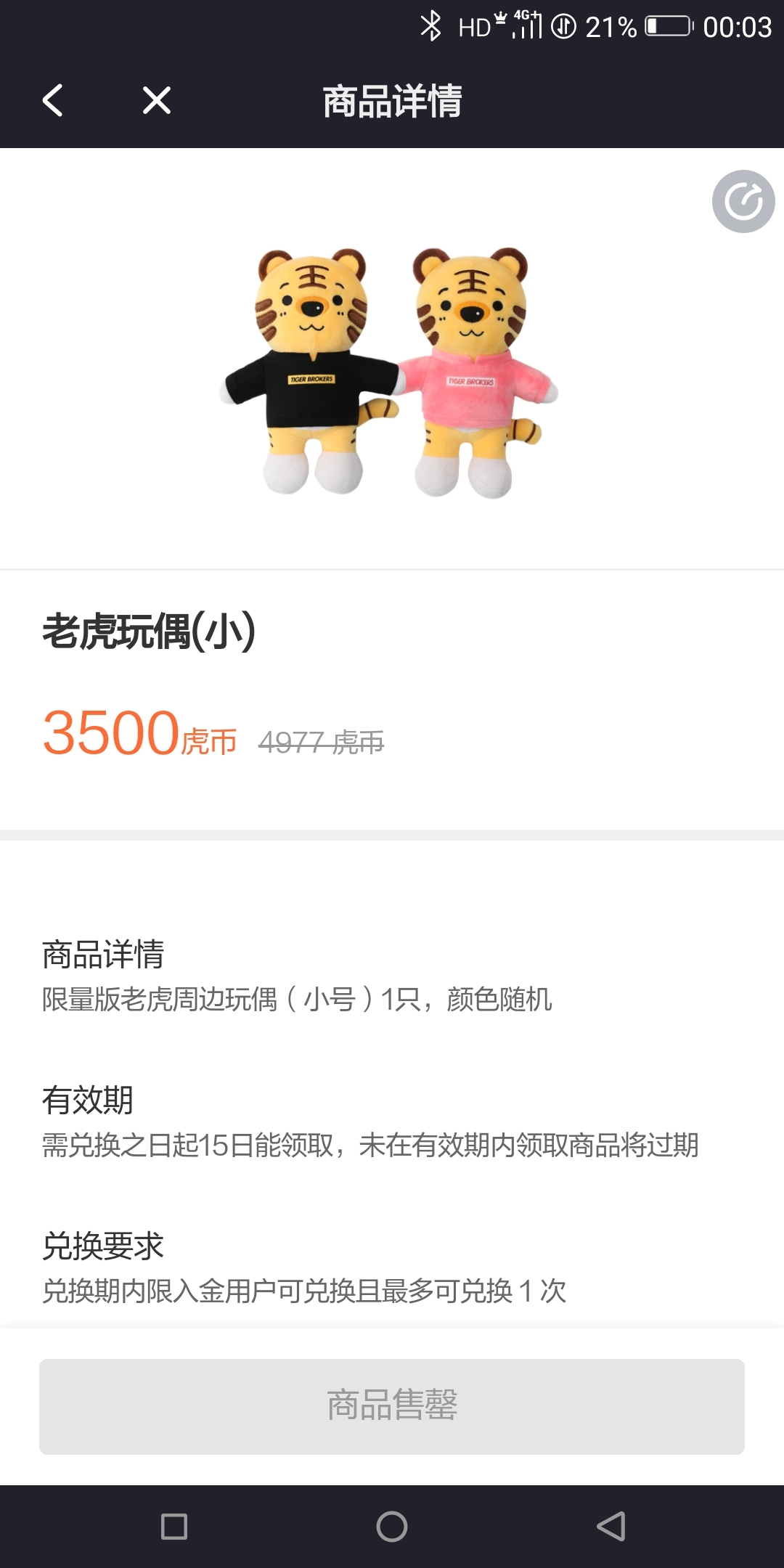 存到3500虎币,满怀期待的兑换小老虎,结果兑完了:)