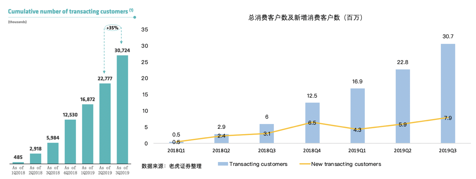 第三季度月平均消费者为930万,同比大增398%。截止9月30日的累计消费用户达3072万,较全年同期的598万增长413%,同时较上季度的2278万净增790万,下图可见,这个净增数量超过了此前任何季度,说明瑞幸的用户增长从未停摆,新品上线和下沉市场的开拓都为瑞幸带来了新的客流。