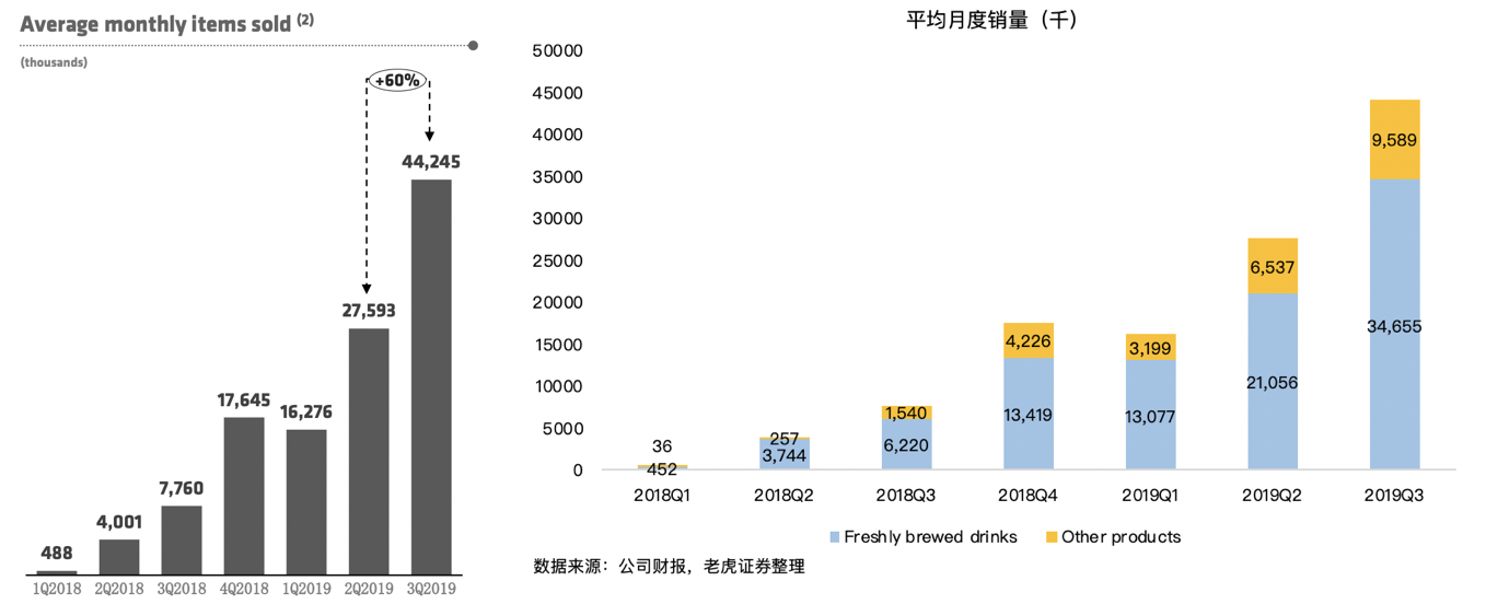 $瑞幸咖啡(LK)$ 今天发布2019年第三季度财报,无论是财务指标和运营指标都大幅好于市场预期。正如此前公司承诺,这个季度门店层面首次实现盈利,爆发性增长的商品销量使得瑞幸股价盘前一度暴涨15%。
