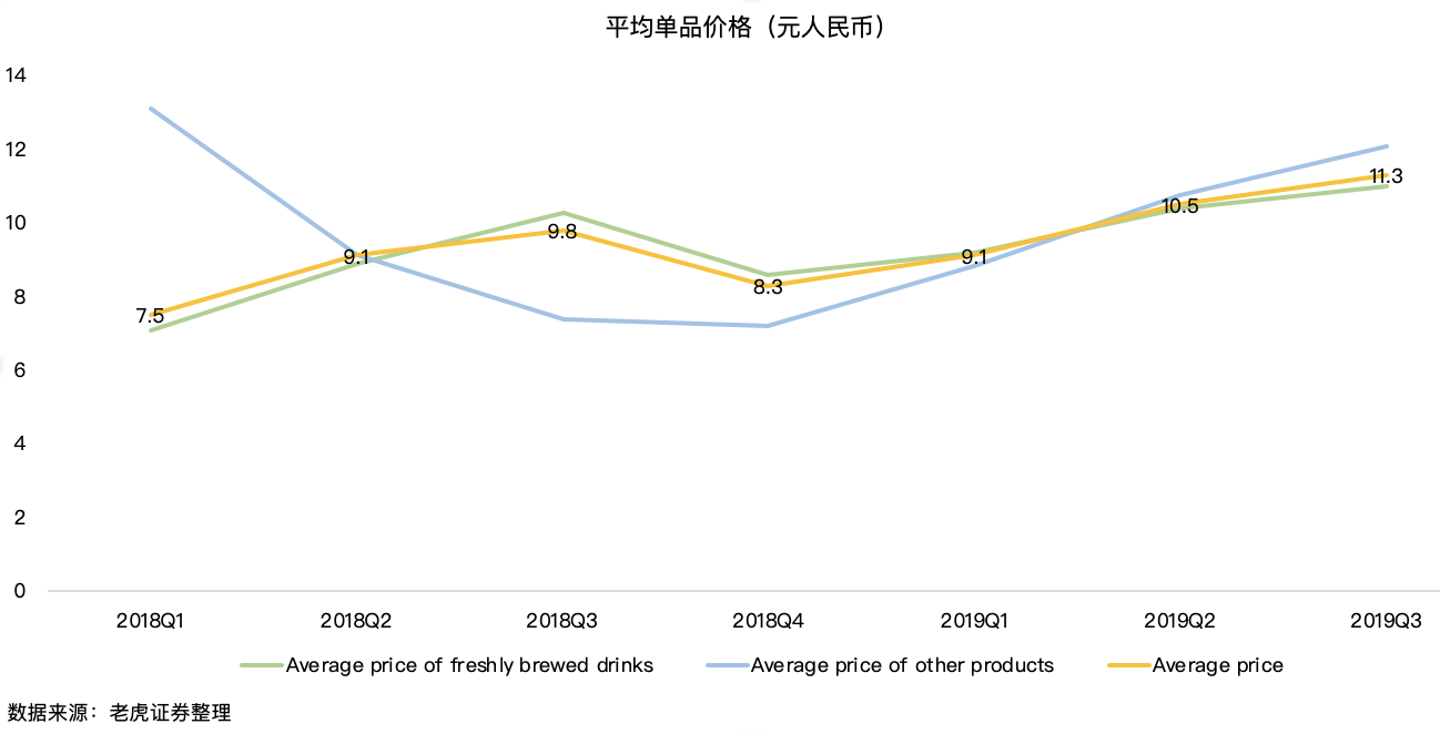 第三季度由于用户补贴和促销的缩减,瑞幸的平均单品均价已经上升至11.3元。其中咖啡的单价在11元,其它产品的均价12.1元,是瑞幸历史最高的单价水平。但不得不提的是,第四季度的双十一期间,瑞幸启动了“第二届Luckin狂欢节”推出长达16天的“充10赠10”活动,回顾去年第一届7天活动导致单品价格低至8.3元,相信今次16天活动势必影响第四季度的单品价格,但也将提升销售量。