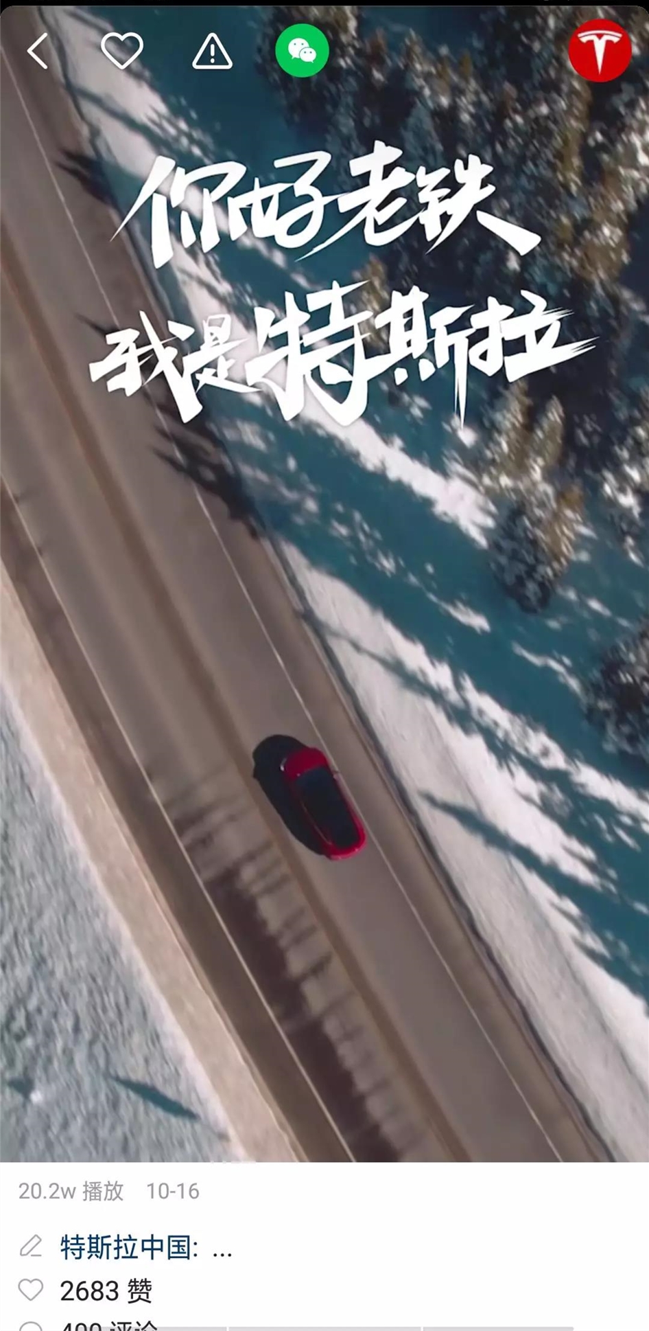 10月18日,特斯拉宣布正式入驻快手,还开设了官方账号,这条广告短视频在官号上有超过20万次点赞。线上营销,成为特斯拉在营销上的破局点所在。