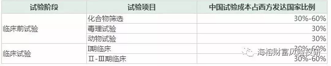CRO/CMO是一个知识密集型行业,主要依靠医药领域的专业技术人员提供服务。由于国内有“工程师红利”的成本优势,在临床前研究和临床研究各个阶段的研发费用是发达国家同行业的30%左右。