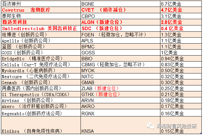 高瓴资本主要重仓中国的创新药赛道(包括第一梯队的创新药公司+CRO/CMO创新药卖铲子的公司)+ 不受医保控费影响 “金眼银牙铜骨头”医疗器械和辅助行业。