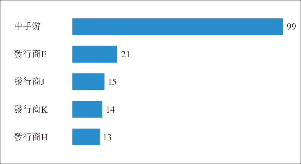 为什么?你看看各家独立手游发行商的IP储备量就能明了,中手游99个IP是第二名的4.7倍。