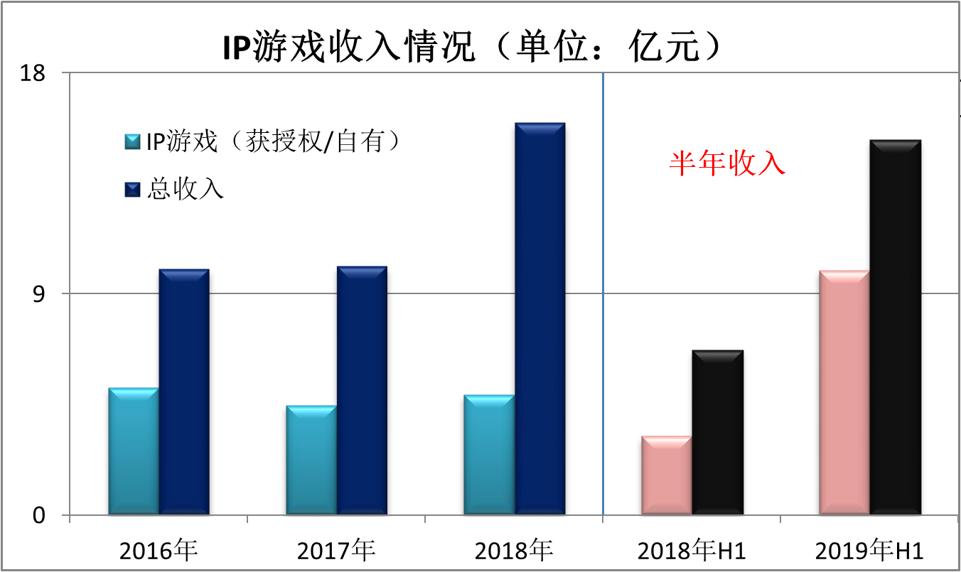 IP游戏的收入也不断升高,2019年半年IP游戏收入,已经超过以往全年收入。