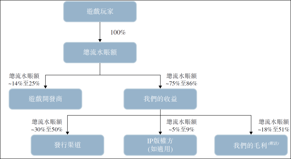 75%-86%的流水算中手游的,中手游再给“发行渠道30%-50%费用,IP版权方5%-9%的费用”;