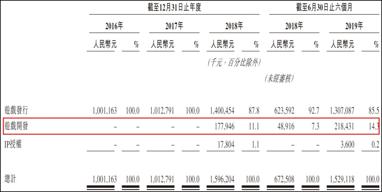 但正起势的游戏开发就不同了(2019年上半年收入从去年同期0.49亿元提升到2.18亿元),这是中手游的进攻性业务。