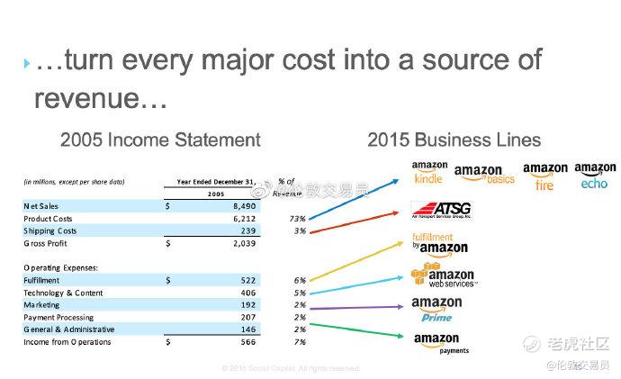 2016年的图,到现在来看依然都是那么真知灼见。$亚马逊 AMZN$ 股价能坐上火箭,其本质在于它把自己的“成本点都变成了利润点” [强]