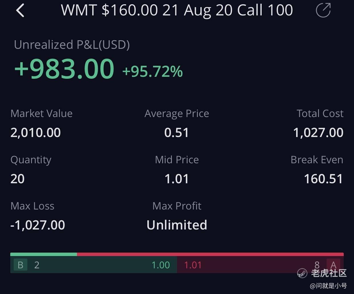 - 小白相·2020-07-16老师,我跟着你上wmt的8月160 call了点赞举报
