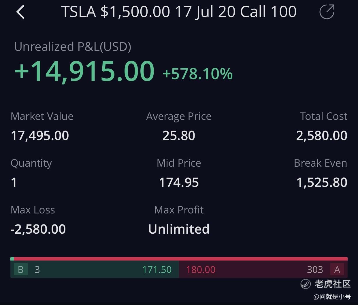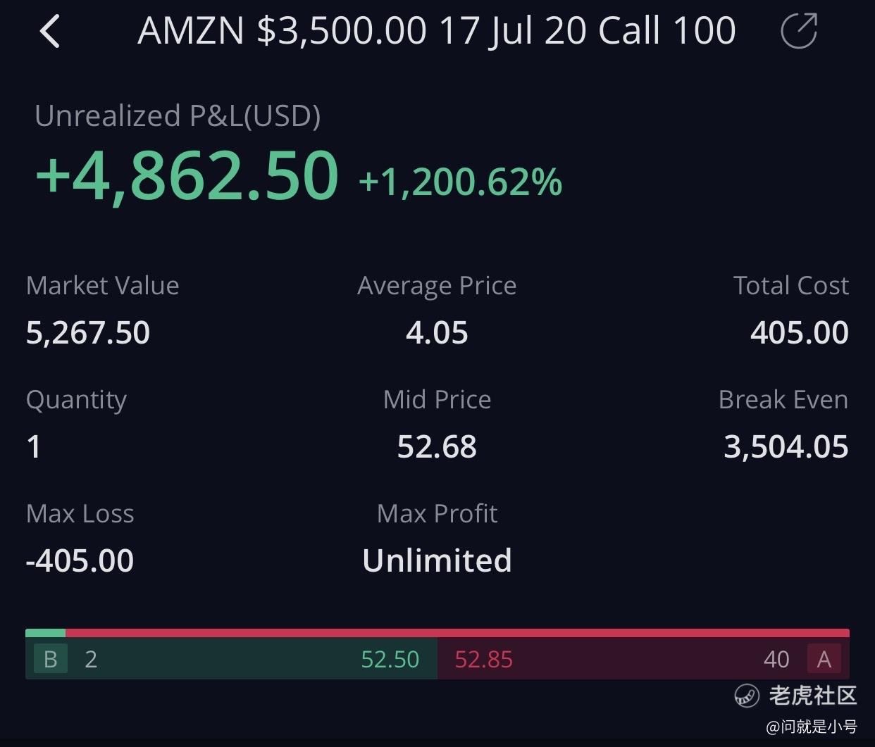 $亚马逊(AMZN)$$特斯拉(TSLA)$$沃尔玛(WMT)$没有各位赚的多,tsla1500call开盘180卖掉了,amzn的3500是在7/6买入的,准备看看是一龙厉害还是贝佐斯🐂🍺。顺便说一句我加仓了wmt的八月160call,成本由0.16变成了0.51。baba还亏着2000刀[流泪] [流泪]