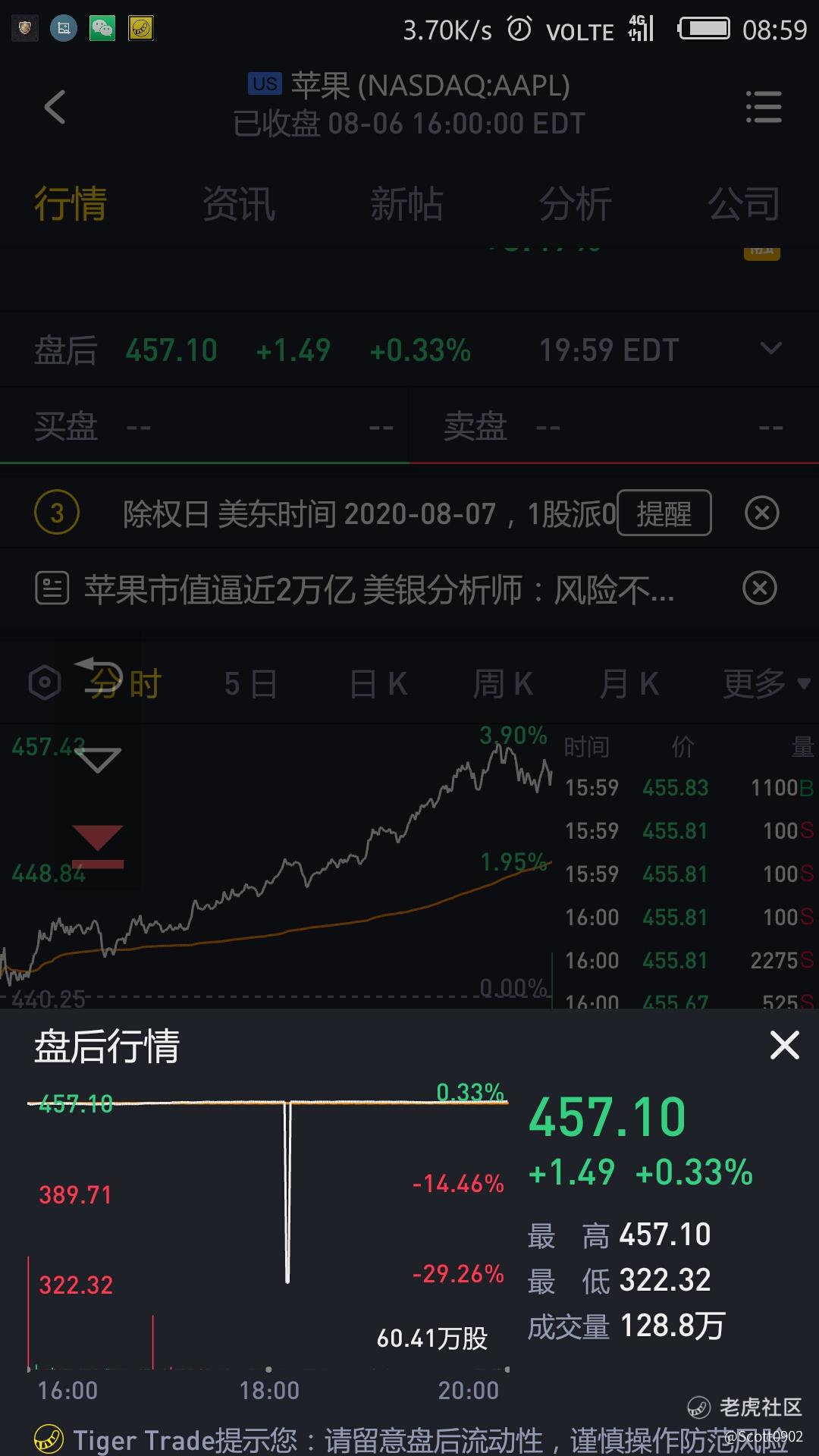 $苹果(AAPL)$盘后的最低点低至322,很快又反弹至高点,究竟盘后发生了什么?难道像丁蟹所说的“只是技术性调整”?谁能在这个地点买入绝对大赚啊。