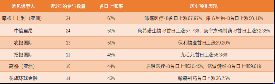 下面为大家介绍一些常见的保荐人及其历史项目的表现: