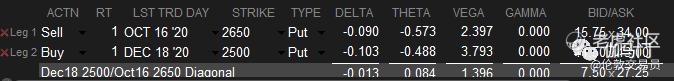 这个交易基本概念是市场不会在选举之前暴跌低于2650。因此基于这个观点卖空的10月期权大概率不会被行权,从而得到一个免费的12月看跌期权来保护10月中至12月中这段时间可能的市场波动。