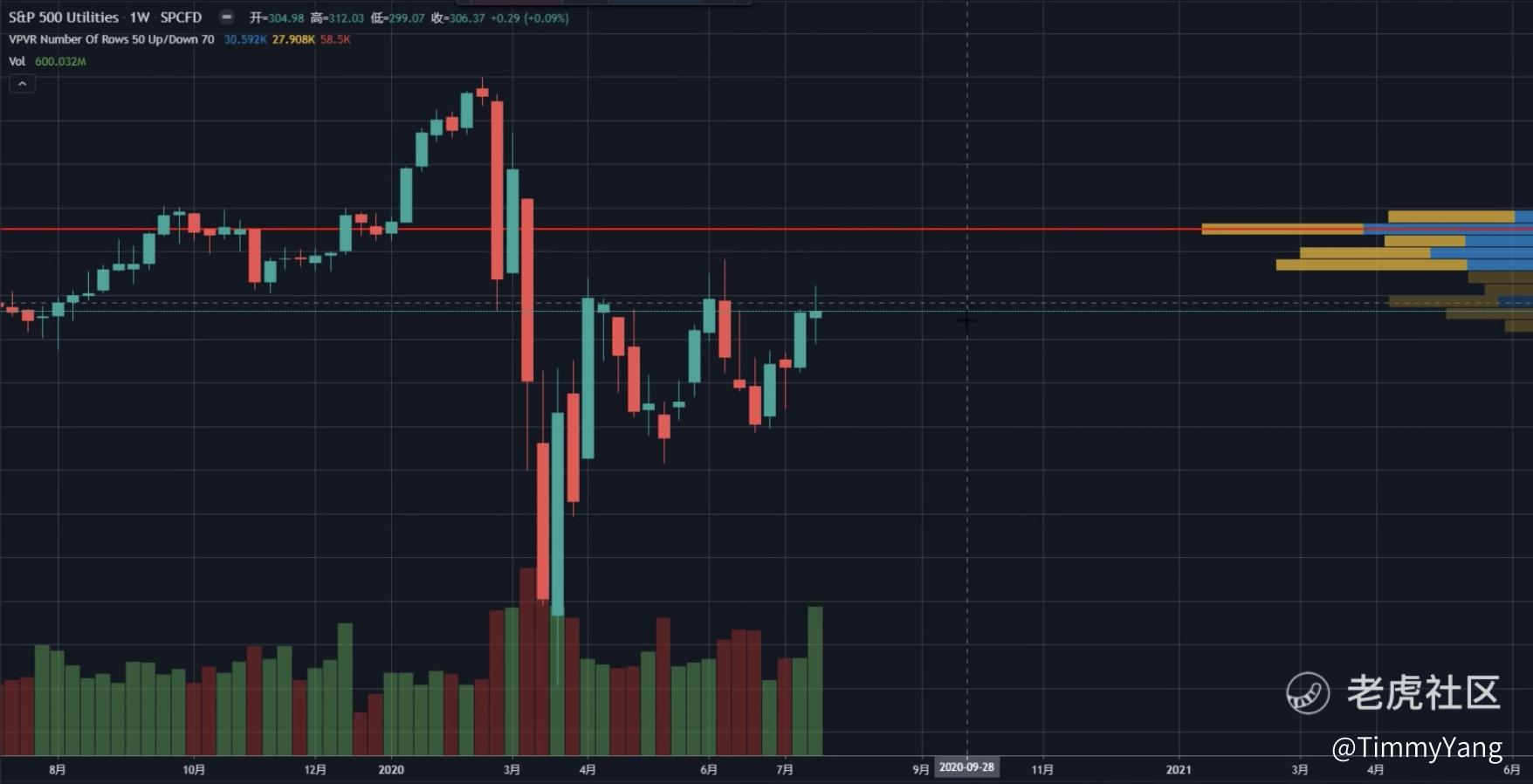 比如说疫情方面的影响,对于公共事业板块的影响,就不会有一些传统行业影响那么大。所以这个板块前期在各大板块通通上涨的时候,它反而是承压的,反弹之后的横向波动的一个箱体在这里边波动。