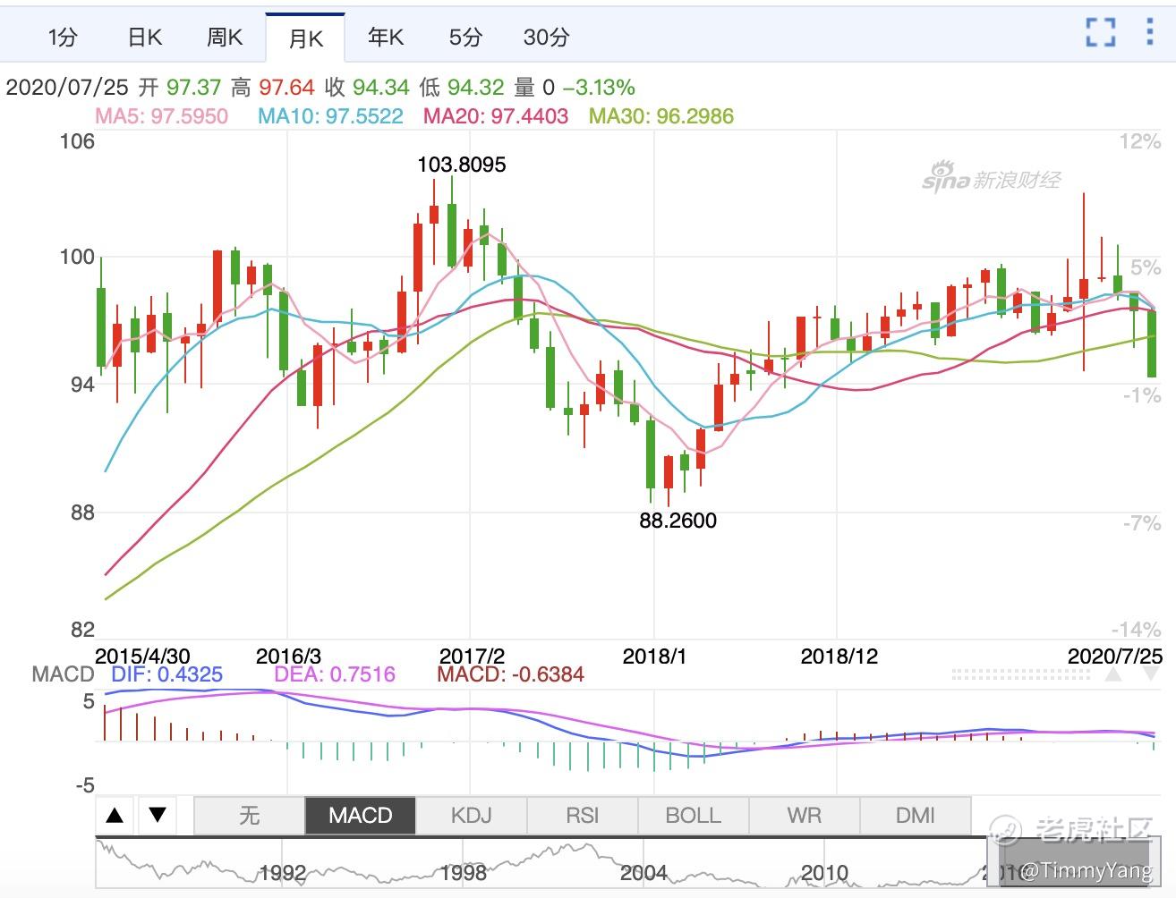 如果美元指数到94以下,说明经济出现了非常大的问题,面临着很长时间的复苏,对于整体股市的影响就更大了,那么股市上业绩就不会好看了,同样高估值水分较多的公司,那么水分可能会挤的就要更多一些了。大家不要去孤立的看待说美元指数,它是一个联动效果。