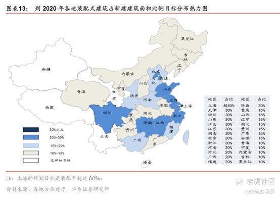 考虑到是政策指导意见引爆了市场需求,地方省市的发展规划成为了市场份额大小的先行指标,装配化率目标的政策变化可以用来追踪市场的规模变化。