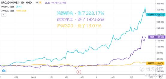 A股的鸿路钢构市值在2019年就开启稳定上涨,而H股的远大住工则在Q2之前并未被投资人追捧。但自上个月开始,两家公司都开始了大幅上涨。