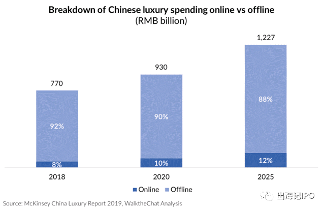我们知道,目前中国早已具备了强大的电子商务能力可能对奢侈品消费的加速带来抑制。。但随着新冠疫情的大流行加速了这一转变。电子商务市场随着人员缩减,店铺关闭等因素加速成为奢侈品品牌的生命线;同时除了奢侈品行业的自由支配性质外,其对线下销售严重依赖也意味着相对那些拥有强大全渠道销售模式以及线上销售的公司受到的冲击更大,而这恰恰让奢侈品行业更加理由去拥抱电子商务。