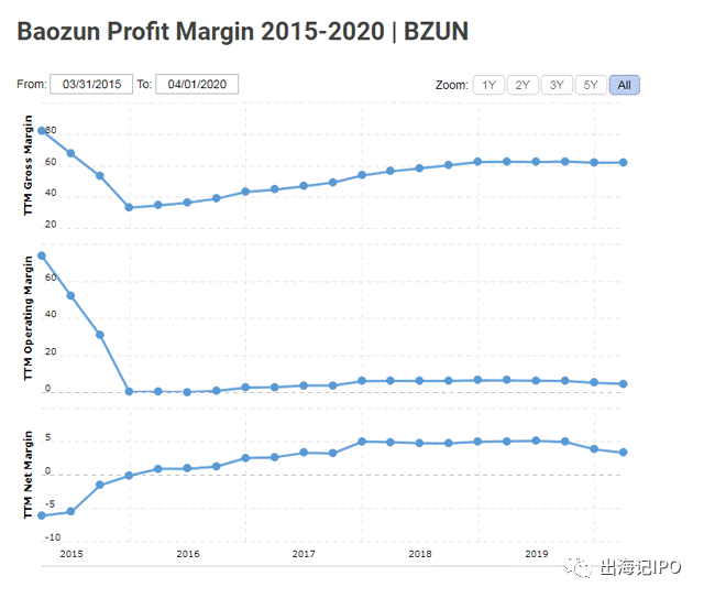 根据宝尊最新的财报报告显示,其非分销GMV占总GMV的91%,高于2017年的86%。通过寄售和服务产生的收入占总收入的53%(高于2017年的45.6%),分销模式收益占47%(低于2017年54.4%),净利润率从五年前的负利率提升至目前的3-5%,可以说以轻资产模式提高盈利能力的战略部署已初露端倪。