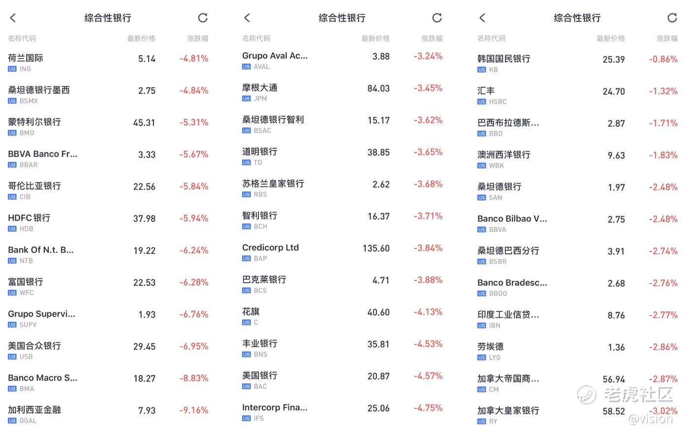短期来说,银行利润仍存在较大不稳定性,从目前的形势来看,现在抄底银行股,犹如在接一个下落的飞刀,一不小心就头破血流。$美国银行(BAC)$ $美国合众银行(USB)$ $摩根大通(JPM)$ $富国银行(WFC)$ $高盛(GS)$ $摩根士丹利(MS)$ $花旗(C)$