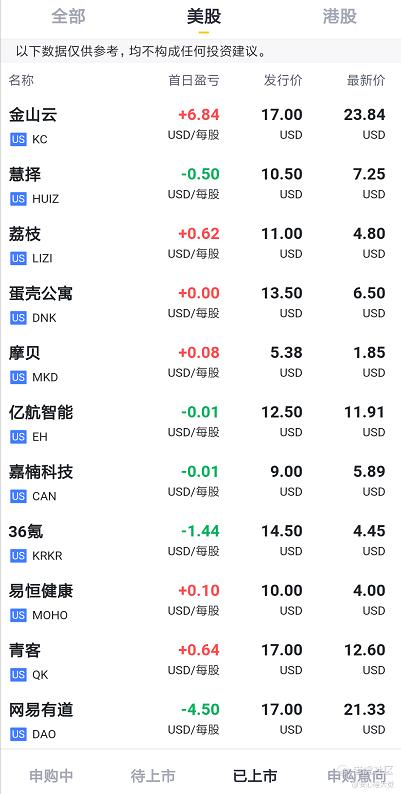 一般收益的有:网易有道(25%),虎牙(32%),华米科技(23%)。
