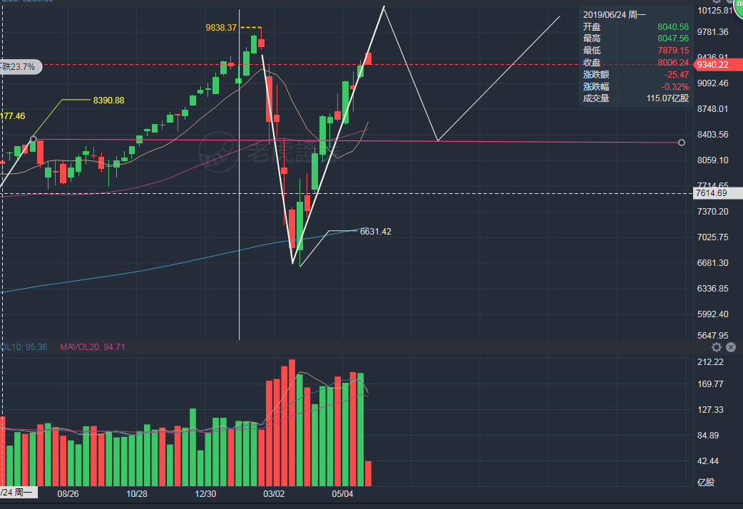 目前纳指已到了关键时刻,结合过去的经验,可以初步推演纳指后半年的基本走势: