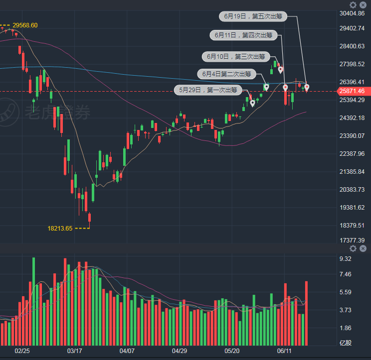 纳指自6月4日开始,也陆续出现了四次筹码抛售的交易日。