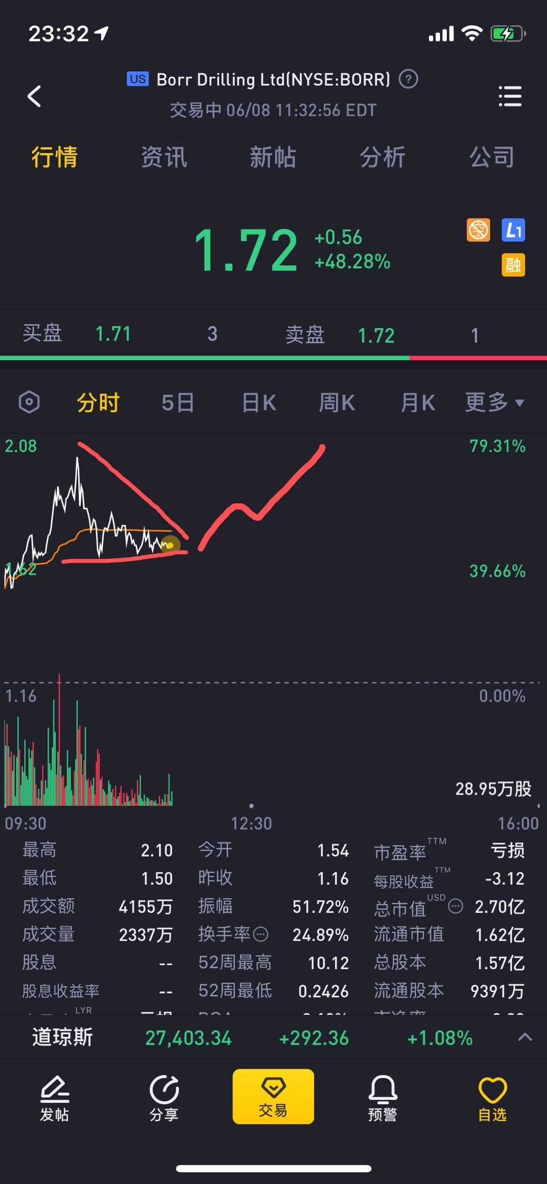 $Borr Drilling Ltd(BORR)$限价单没挂上 惨痛教训 该市价就市价 不差那几块钱浮动 艹