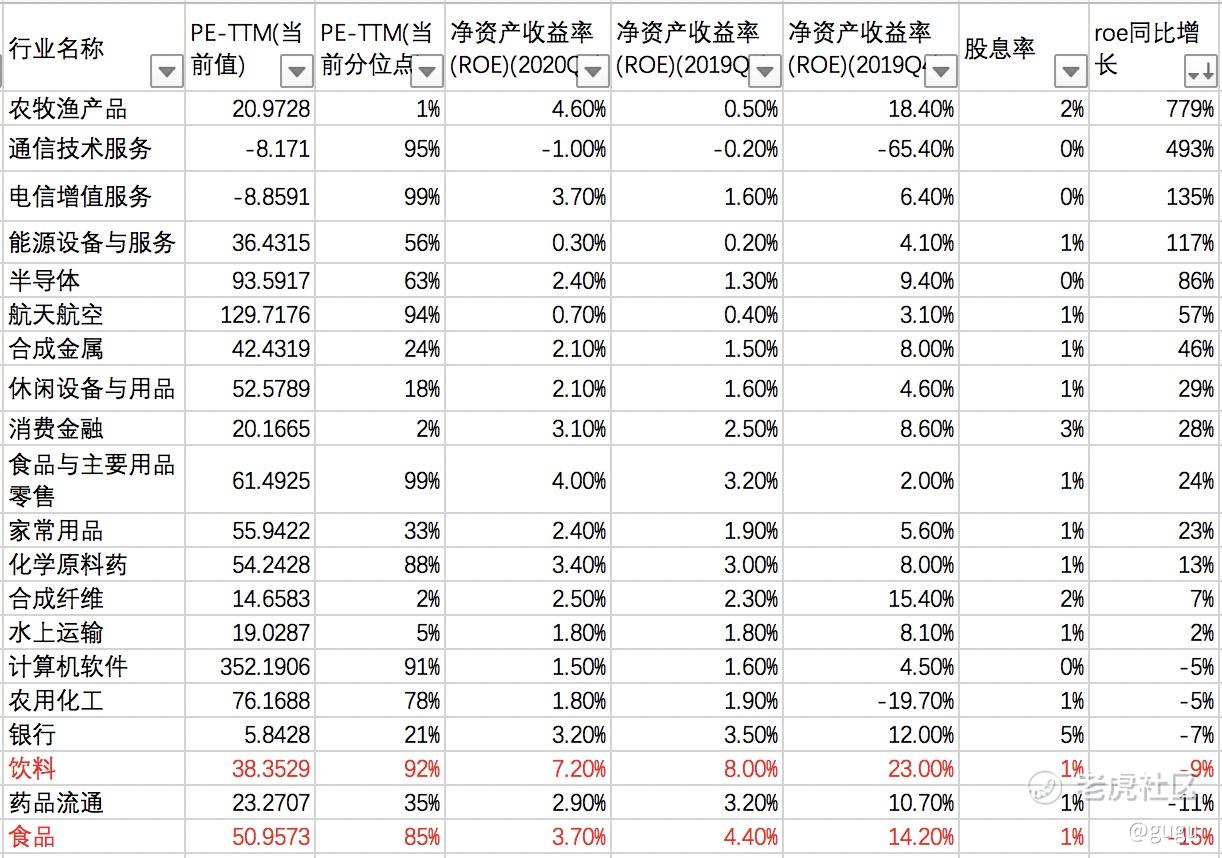 一直以来食品、白酒和主要消费,行业长期roe在20%以上。今年各行业Q1的roe出来后,食品(下跌15%)、饮料(下跌9%)、医疗保健设备与用品(下跌20%),同比reo下降较少,疫情当下还是一如既往的优秀。这也是在流动性风险释放后,中国消费龙头受到国内资金和海外资金追捧的原因。如果大跌,对我来说很简单,继续定投买入3大消费被动基金。