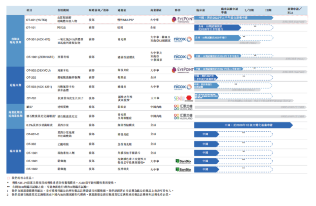 欧康维视核心药物OT-401(YUTIQ)与EyePoint合作进行in-licensing研发,适应症为慢性非感染性葡萄膜炎,预计将于2022年上半年提交在中国提交新药申请。2019年11月OT-401的III期已经开展。