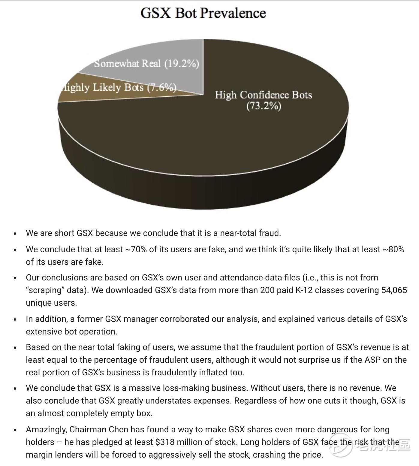 $跟谁学(GSX)$ 浑水称,做空跟谁学,认为它几乎全部都是欺诈。浑水是继香橼、灰熊后第三个发布跟谁学做空报告的做空机构了。