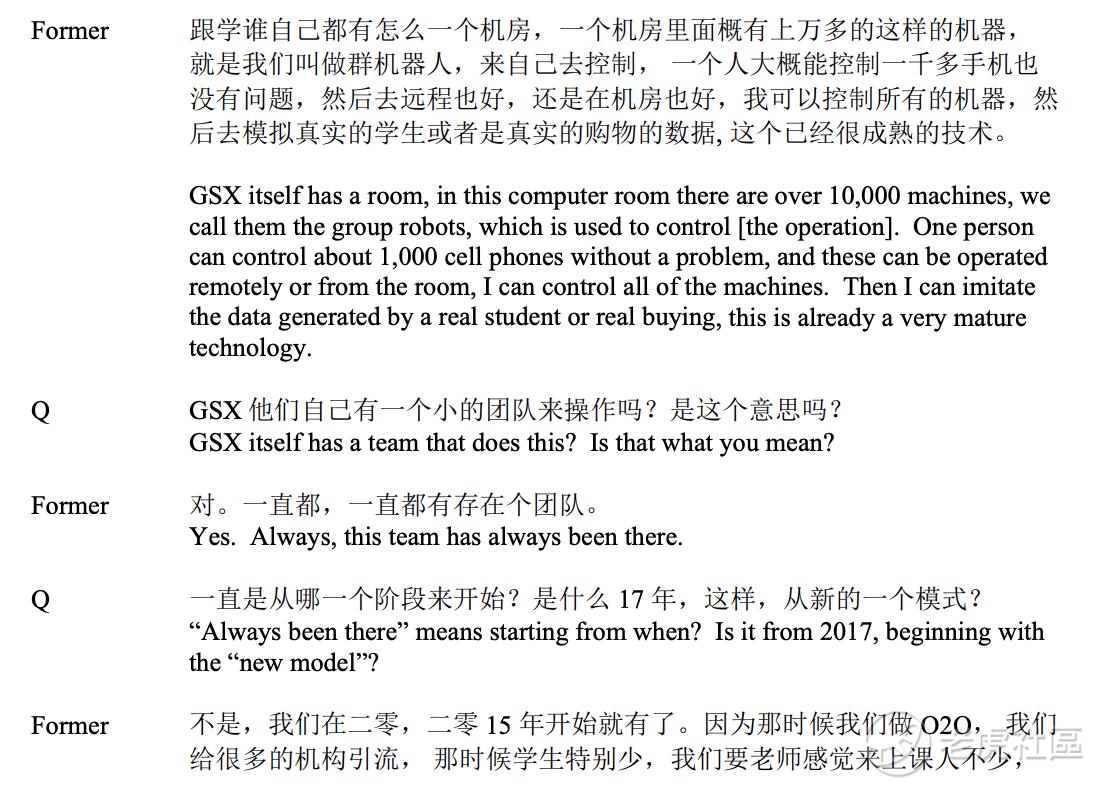 - 此外,前GSX经理证实了我们的分析,并解释了GSX大量使用机器操作的各种细节。