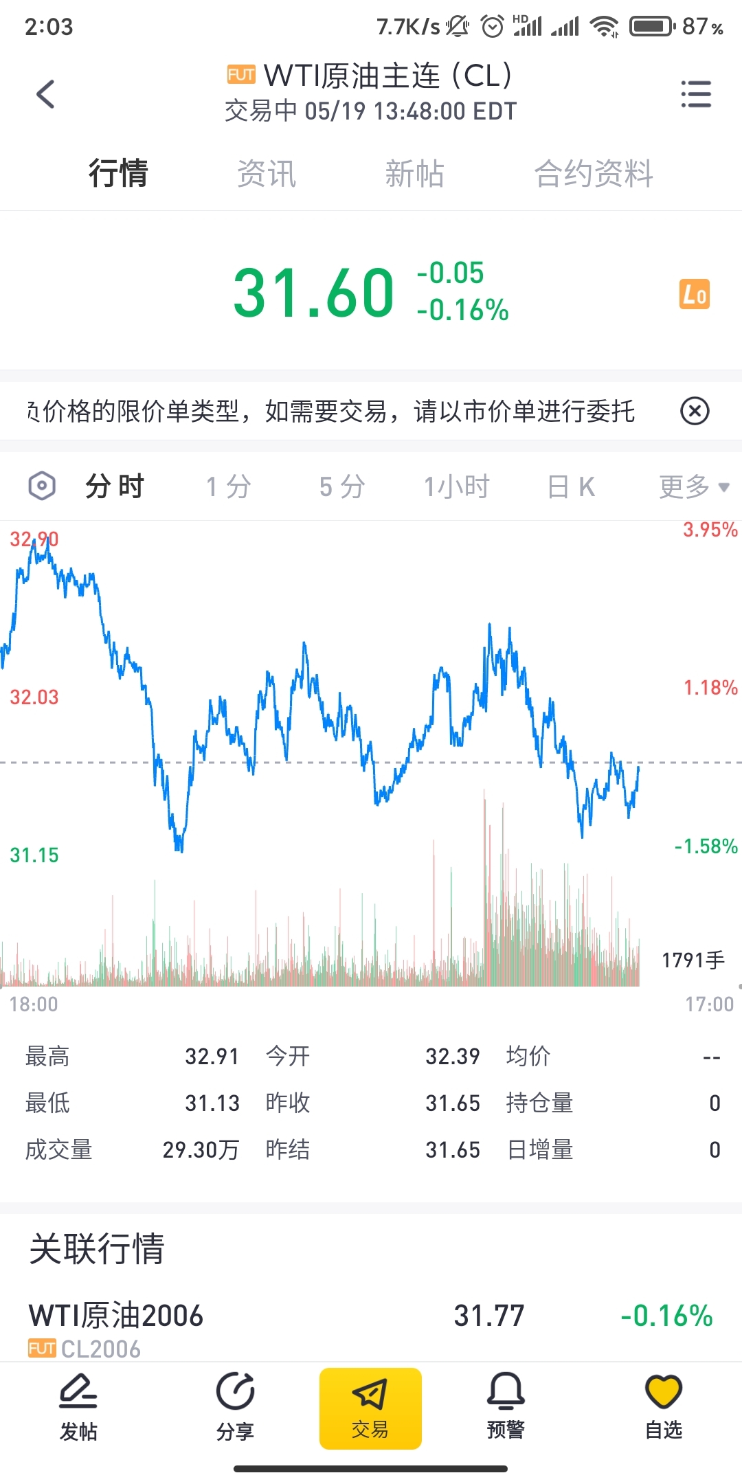 $WTI原油主连(CLmain)$ 请问下,大家,你们的老虎证券app也是这样吗?实时交易价显示都没有,更新卸载都没用