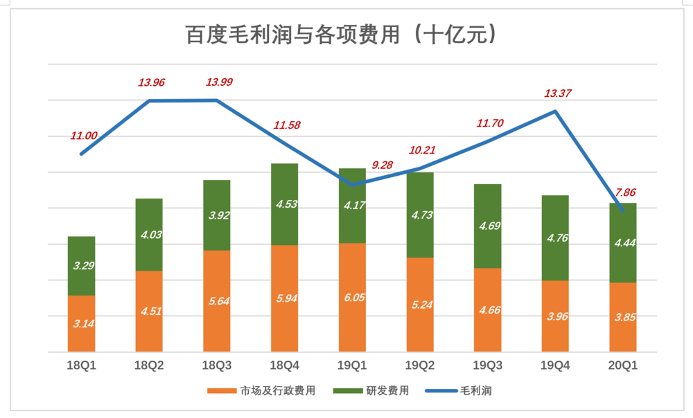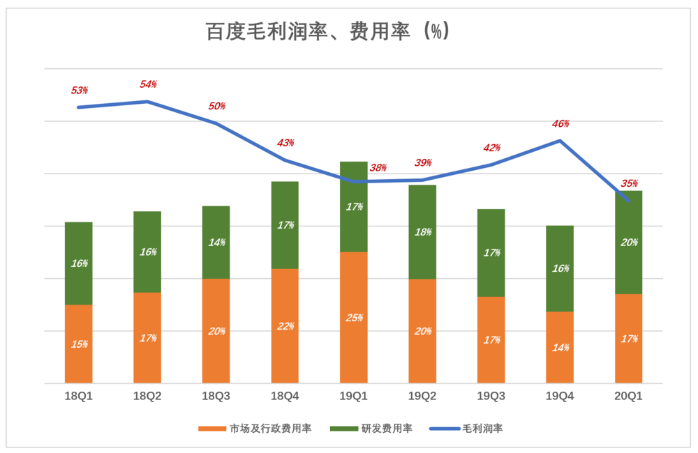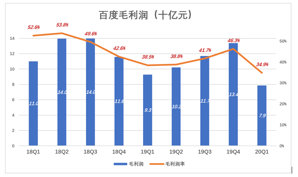 2020年Q1百度毛利润下跌的姿势有些“突兀”,看来疫情对毛利润的影响大于营收。