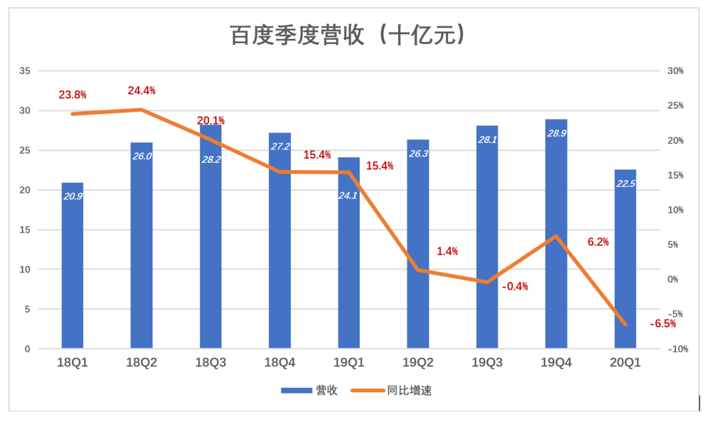 2020年5月19日(北京时间),$百度(BIDU)$ 发布了2020年Q1未经审计财报。受疫情影响,Q1营收225亿美元、同比下降6.5%,但好于分析师预期。财报发布后,百度在盘后交易中涨幅超过8%。