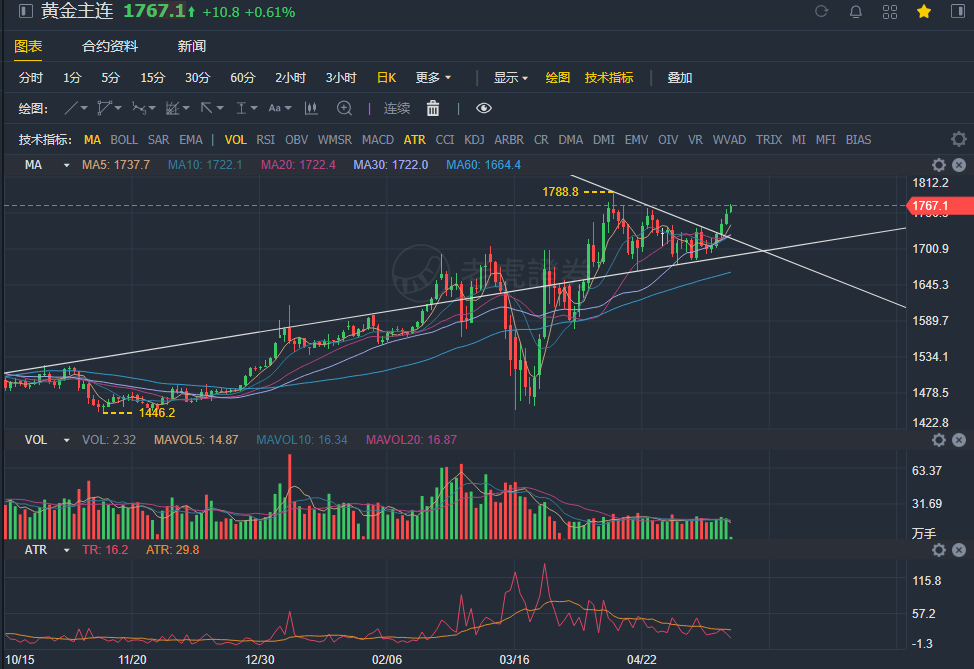 几乎所有的投资者都在等待4月开始的整理行情选择方向,在大周期看涨的现状下,最终的突破方向也是往上。在上周完成方向选择后,金价的表现可圈可点,期金价格距离年内高位和1800仅有一步之遥,而现货金已经刷新年内新高。