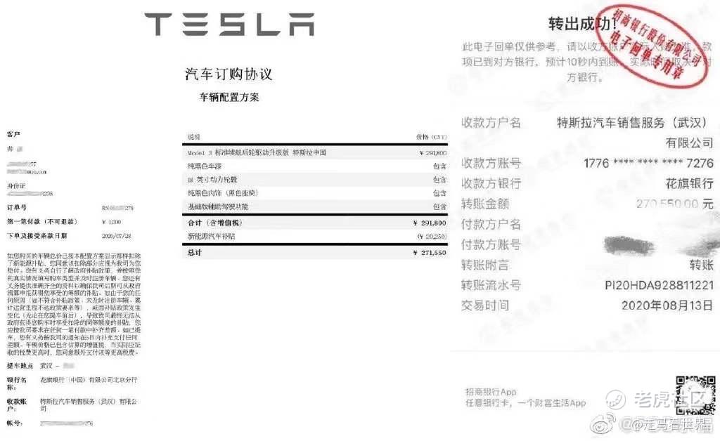 钱特斯拉一分没少,收的仍然是27万多的车款。