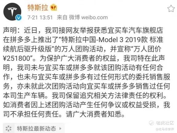 7 月,$拼多多(PDD)$展开$特斯拉(TSLA)$团购活动,原价 291800 元的车型,活动只卖 251800 元。