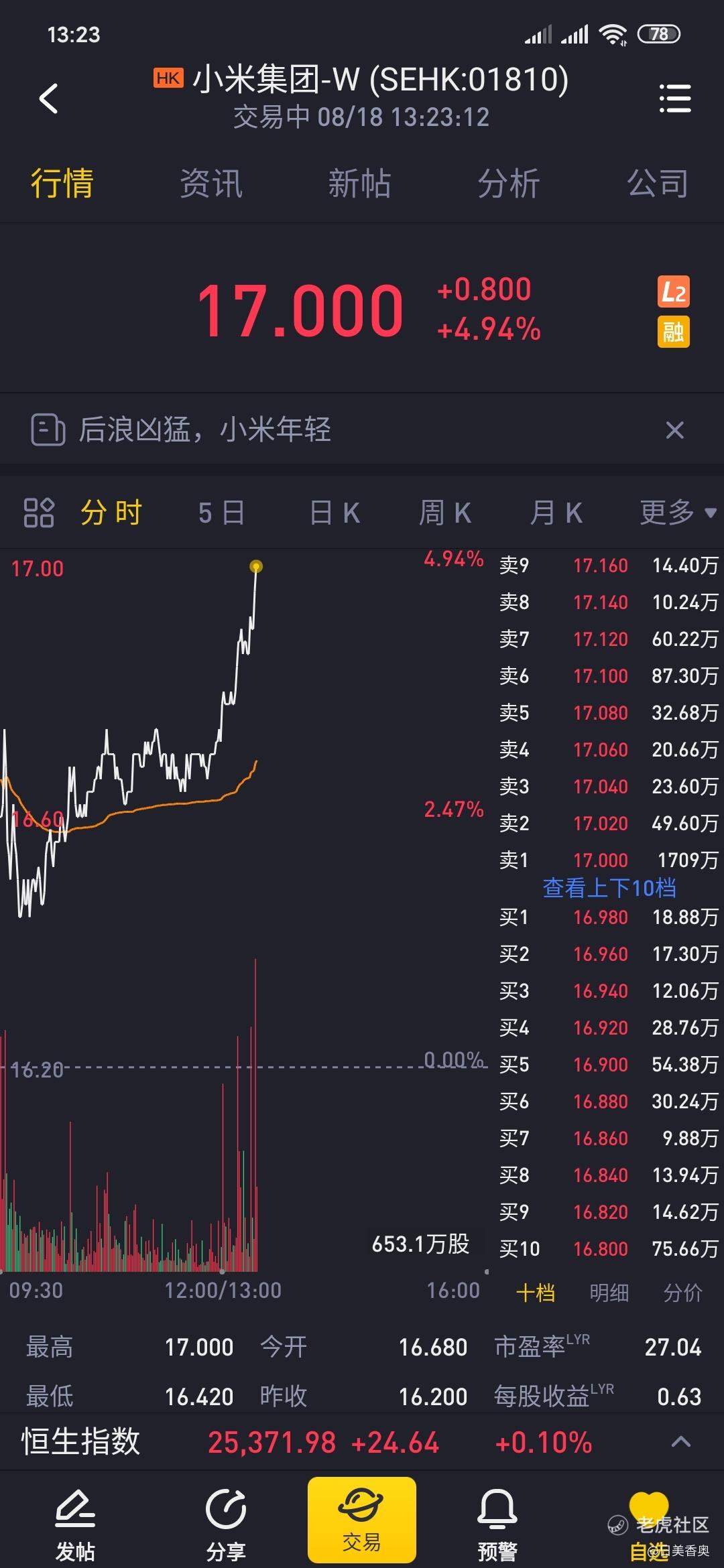 今天差不多能稳在17吧……