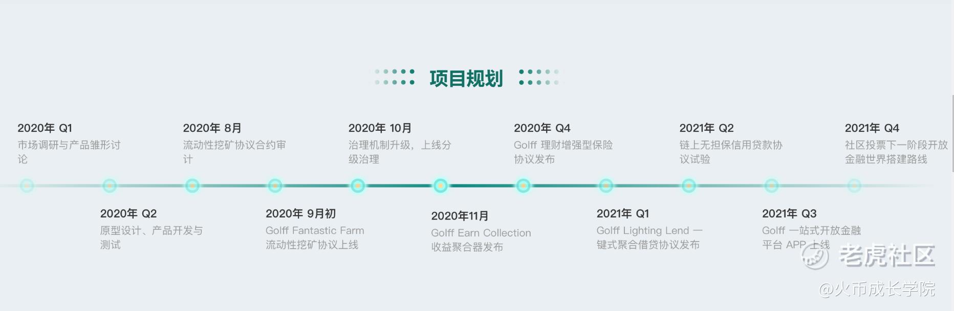 同时目前有许多流动性挖矿团队找到我们,希望跟我们合作,把Golff的经济模型和社区给到他们支持,Golff团队非常乐意帮助其他Defi项目,在冷启动时Golff给与这些项目在生态上的支持。