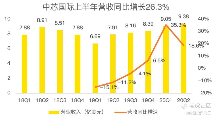 比如,中芯国际上半年营收18.43亿美元,同比增长26.3%,规模和增速尚且可以,但将眼光拉长到两年前,2018年上半年,中芯国际的营收就已经是16.79亿美元了。