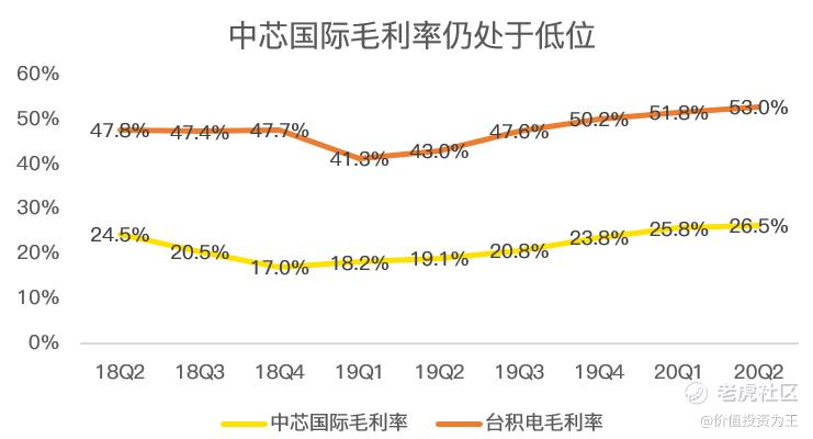 在盈利能力上,作为国之重器、制造业的皇冠,中芯国际的毛利率只有26.5%,虽然创下近些年的新高,但无论是绝对值还是和台积电53%的毛利率相比,该数据都不能称之为优秀。