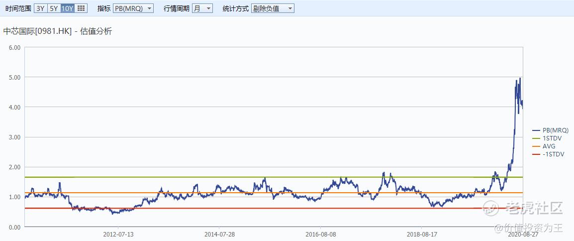 从港股中芯国际的历史PB估值来说,在科创板上市之前,PB最大估值在2PB左右,而当下的估值水准4PB,与历史相比明显高估。