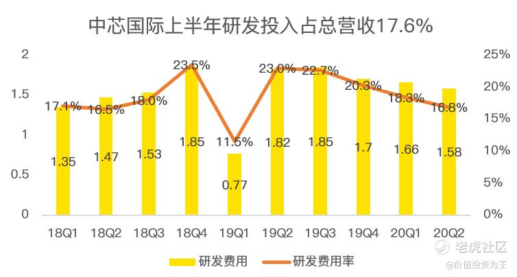 芯片代工对技术和资本的要求相当高昂,上半年,中芯国际在研发上的投入达到3.24亿美元,占总营收的比重达到17.6%。