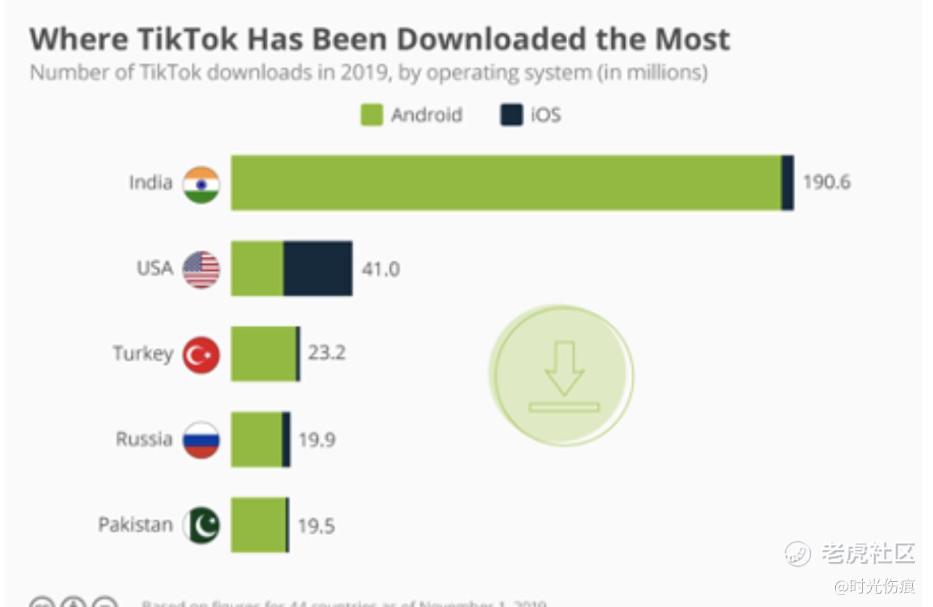 Tiktok在世界的下载率