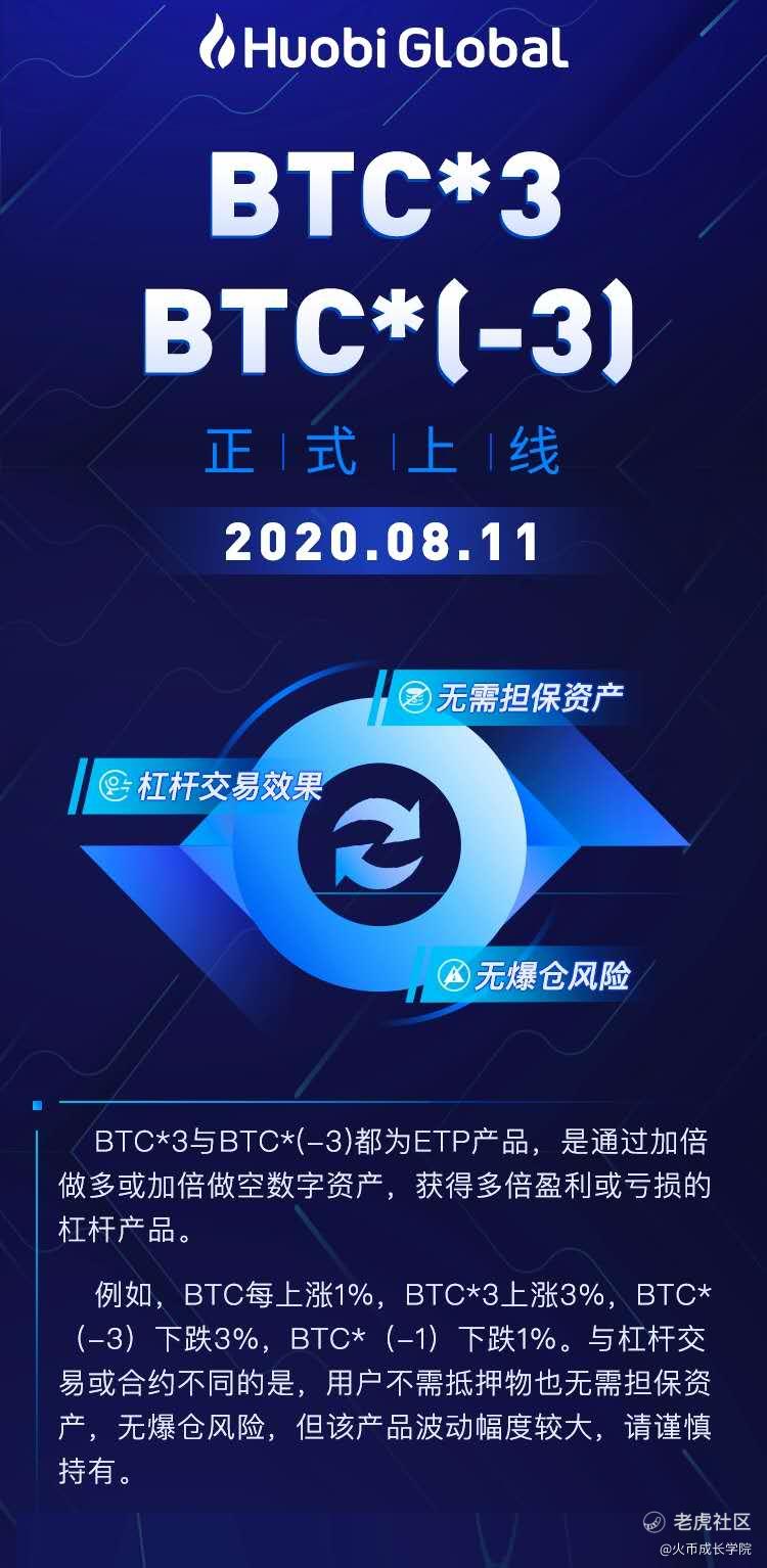 接下来把亮点给大家总结成了三点:第一是不爆仓,第二是易操作,第三是与现货操作方式相同,但它又自带杠杆。大家都明白合约恐怖的地方,当然它也有很多吸引人的魅力。它恐怖的地方就在于会爆仓,有没有什么可以在不爆仓的情况下又能获得合约收益呢?其实这时候大家就会发现ETP是一个非常好的产品,它不会爆仓。它的交易也非常简单,像买现货一样就进去买可以了。它还有一个特点就是自带杠杆,大家可以看到这个乘以后面有+3或-3、+1或-1,这种表示它的杠杆倍数相当于是三倍或一倍,+3就是做多三倍。如果是-3就是做空。